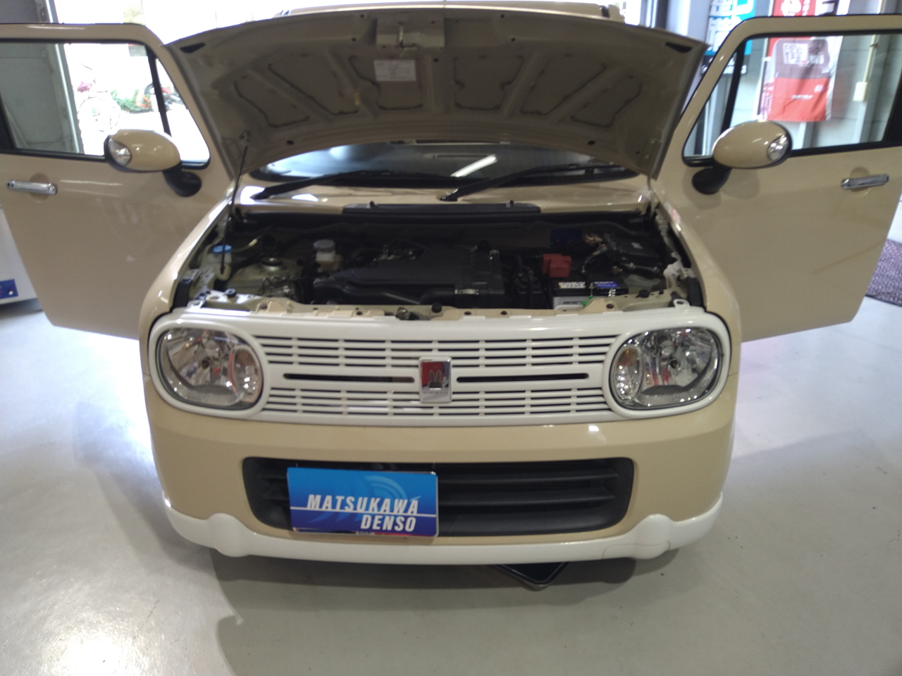 本日、ラパンがエアコン修理で入庫です。